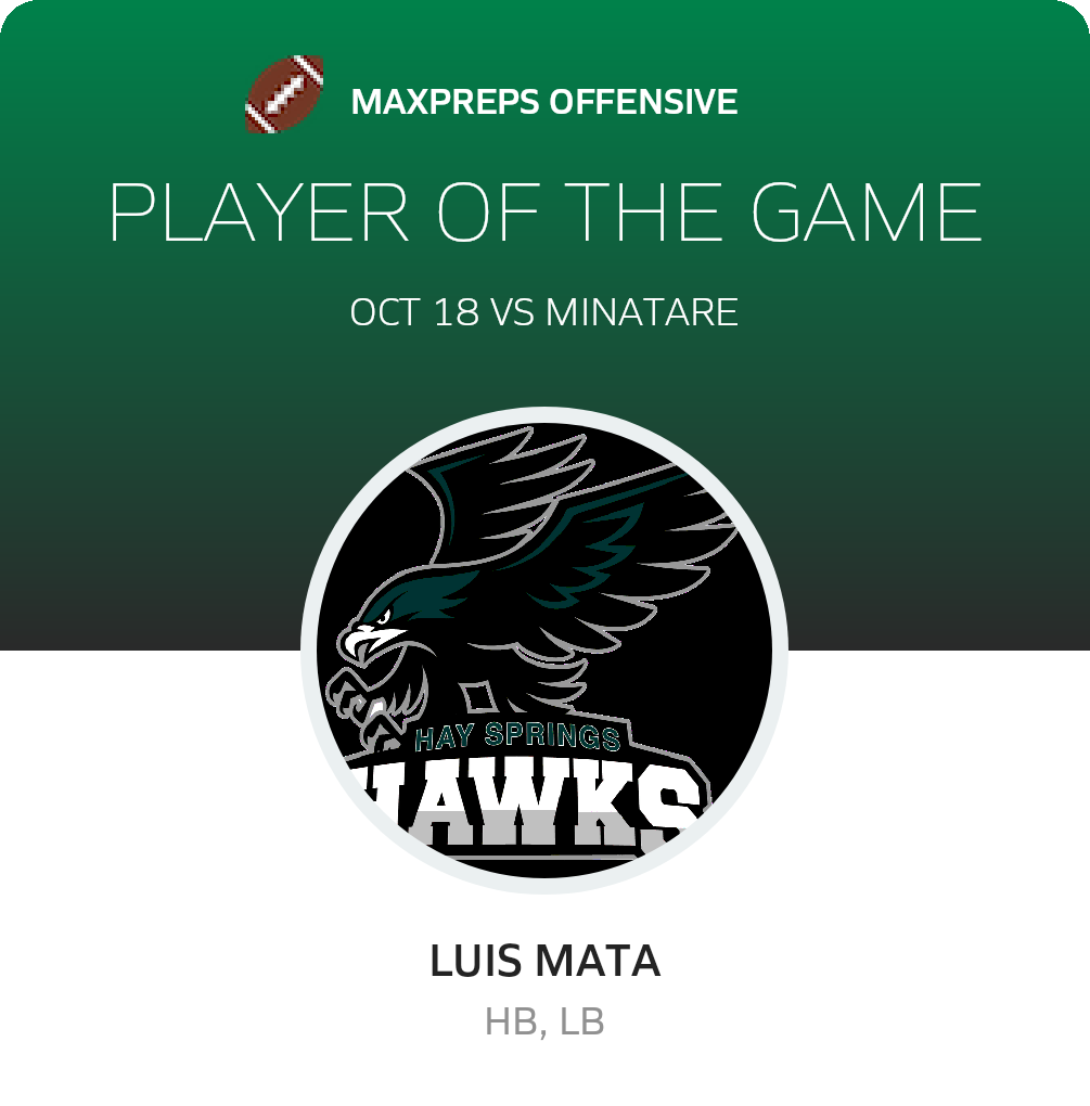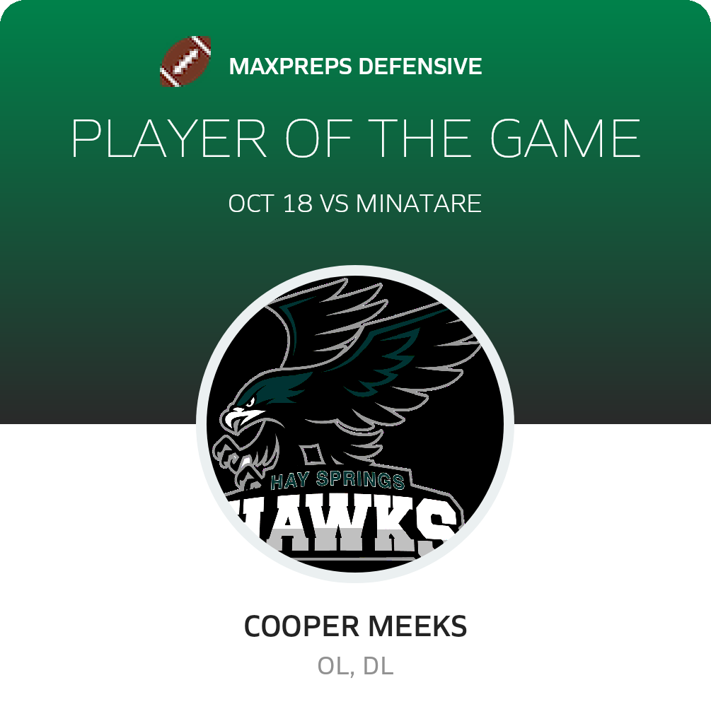 The Hawks now hold a 7-0 record. They take the field next when they host Arthur County for a D6 District 6 (6 Man) test on Friday, October 25. Hay Springs will meet a Wolves squad coming off a 56-6 league win over Crawford (Crawford, NE). The Wolves record now stands at 7-0.