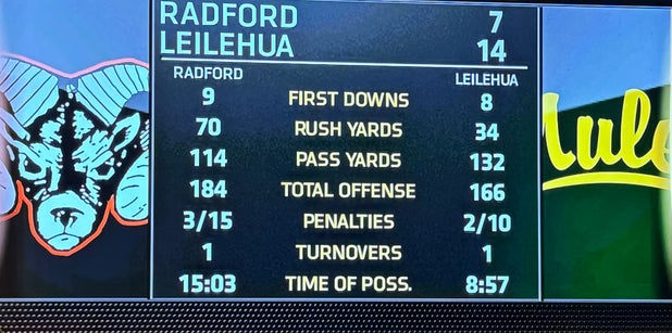 October 18, 2024: Wahiawa, HI 96786 In Friday's league game, the Leilehua Mighty Mules (Wahiawa, HI) football team edged the visiting Radford Rams (Honolulu, HI), by a tally of 28-21.