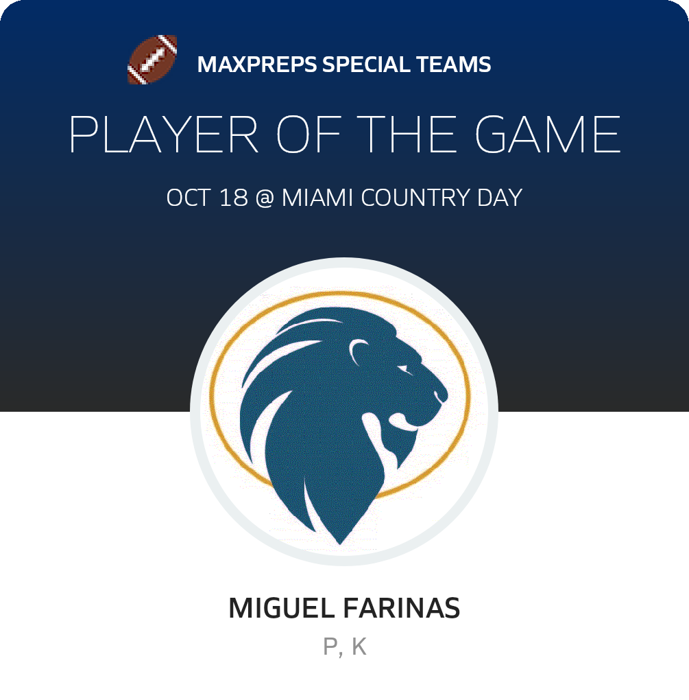 The Spartans now have a 4-1 record. They play next when they travel to Canterbury for a non-league battle on Thursday, October 24. Miami Country Day will play a Cougars team coming off a 21-12 non-league loss to Keswick Christian (St. Petersburg, FL). The Cougars record now stands at 2-5.