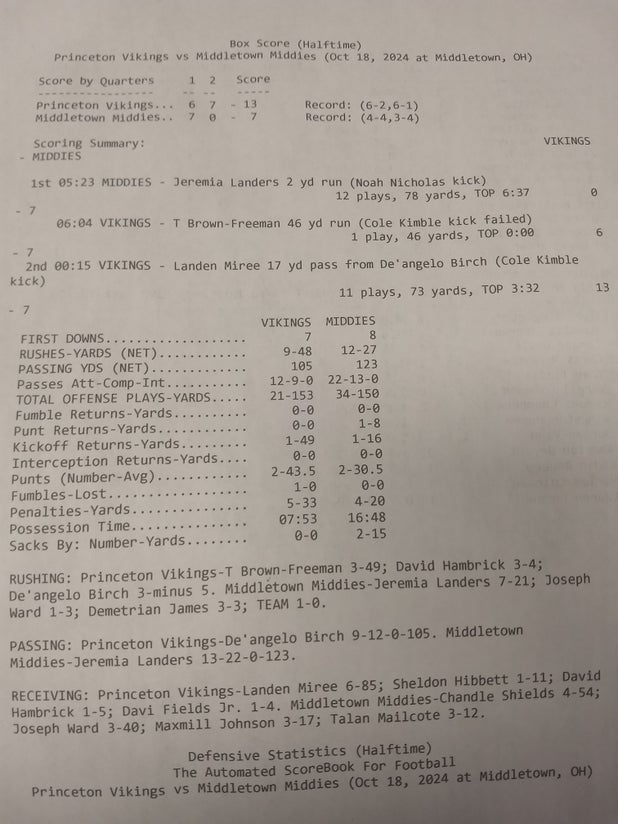Coming up next, the Middies battle the Fairfield Indians (Fairfield, OH) in a Greater Miami contest, on Friday, October 25. Middletown will attempt to better on its 4-5 season record. The Indians enter the contest with a 2-7 record after their 21-18 league loss to Oak Hills (Cincinnati, OH).