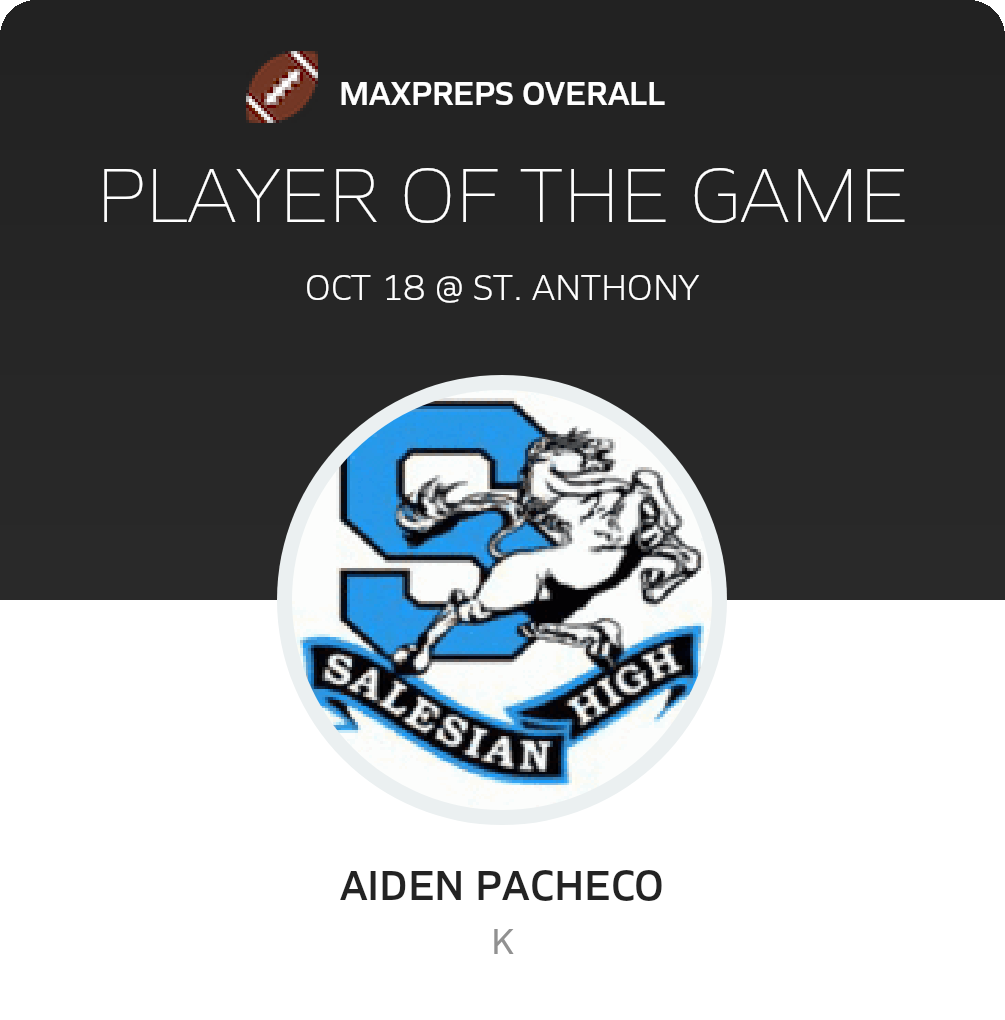 October 18, 2024: Long Beach, CA 90802 The Salesian Mustangs got by the host St. Anthony Saints football team by a score of 10-7 in Friday's league challenge.