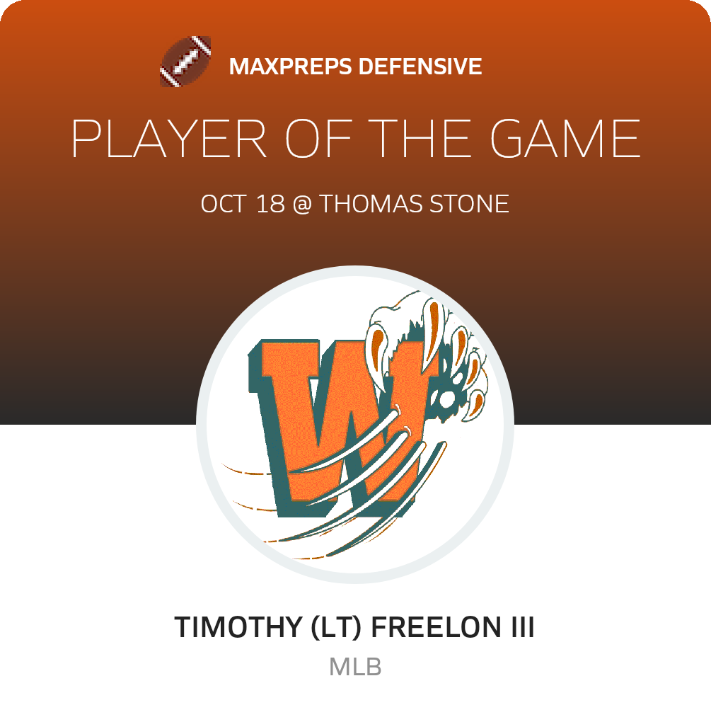 October 18, 2024: Waldorf, MD 20601 The Thomas Stone Cougars football team (Waldorf, MD), was crushed 46-0 in Friday's league bout with the visiting Westlake Wolverines (Waldorf, MD)