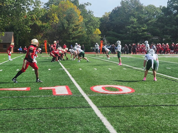 October 18, 2025: Oradell, NJ 07649 In Saturday's non-league game, the Bergen Catholic Crusaders (Oradell, NJ) football team triumphed over the visiting Delbarton Green Wave (Morristown, NJ), by a tally of 42-7.