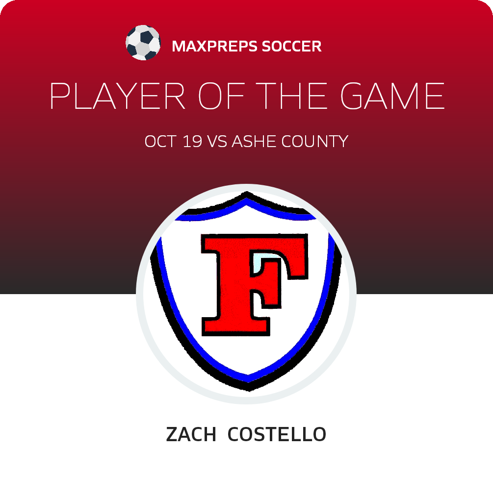 Congratulations to #20 Zach Costello for being selected the Freedom JV Soccer Player of the Match.