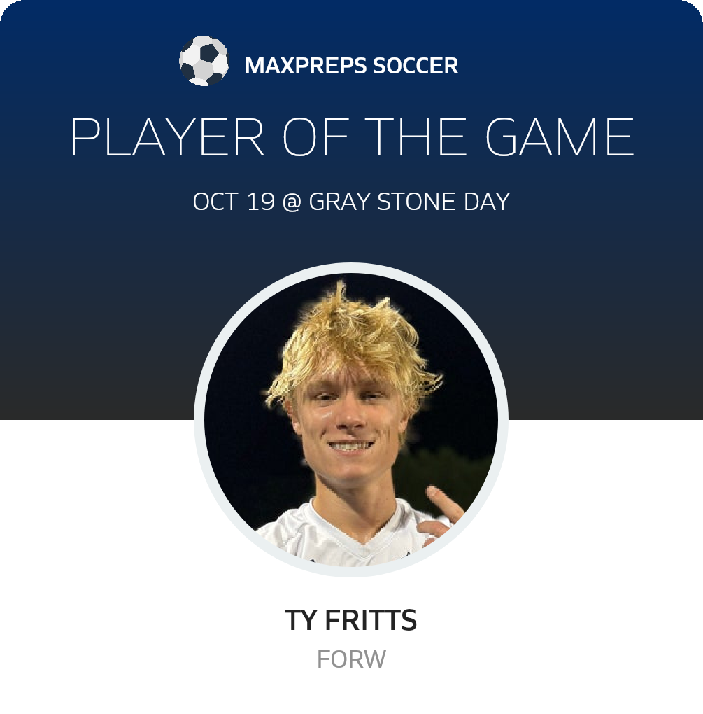 Congratulations to #7 Ty Fritts for being selected the Hickory Ridge Soccer Player of the Match.