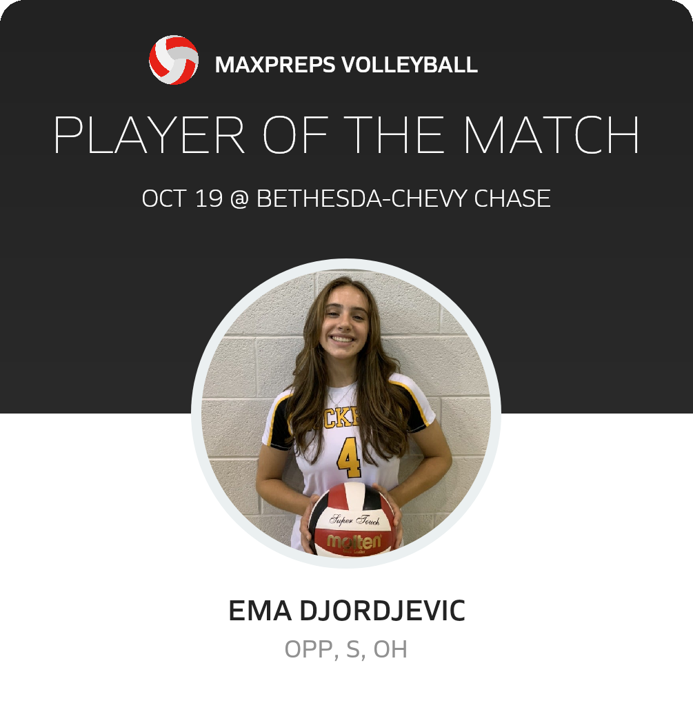 Congratulations to #4 Ema Djordjevic for being selected the Richard Montgomery Volleyball Player of the Match.