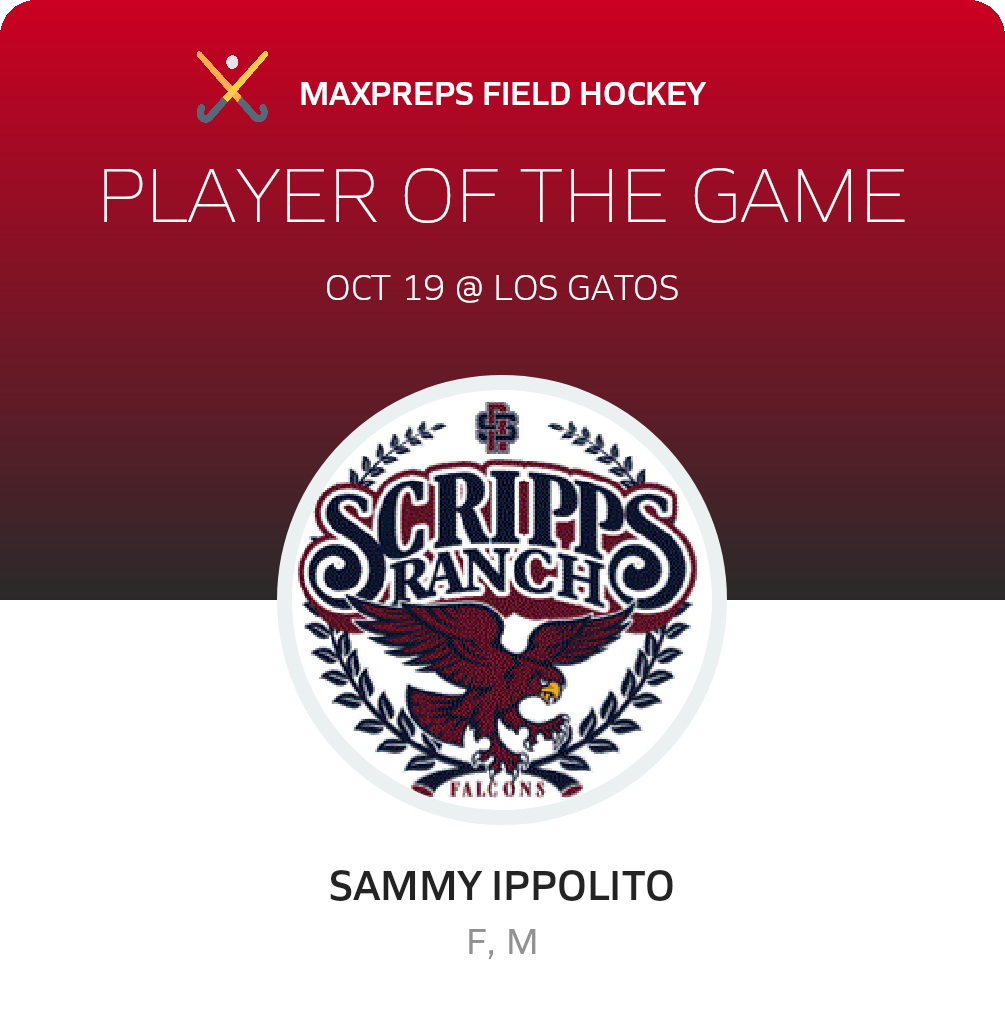 Congratulations to #1 Sammy Ippolito for being selected the Scripps Ranch Field Hockey Player of the Game.