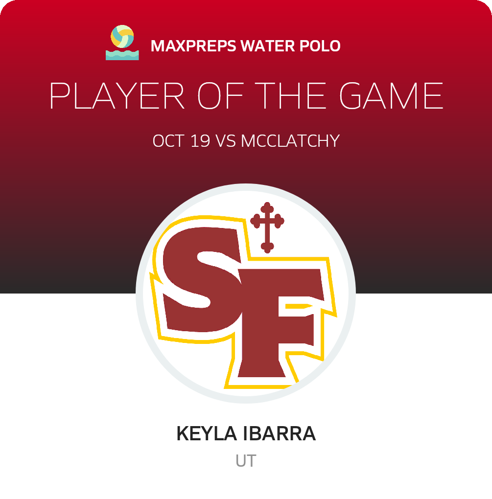 Congratulations to #8 Keyla Ibarra for being selected the St. Francis Girls JV Water Polo Player of the Game.