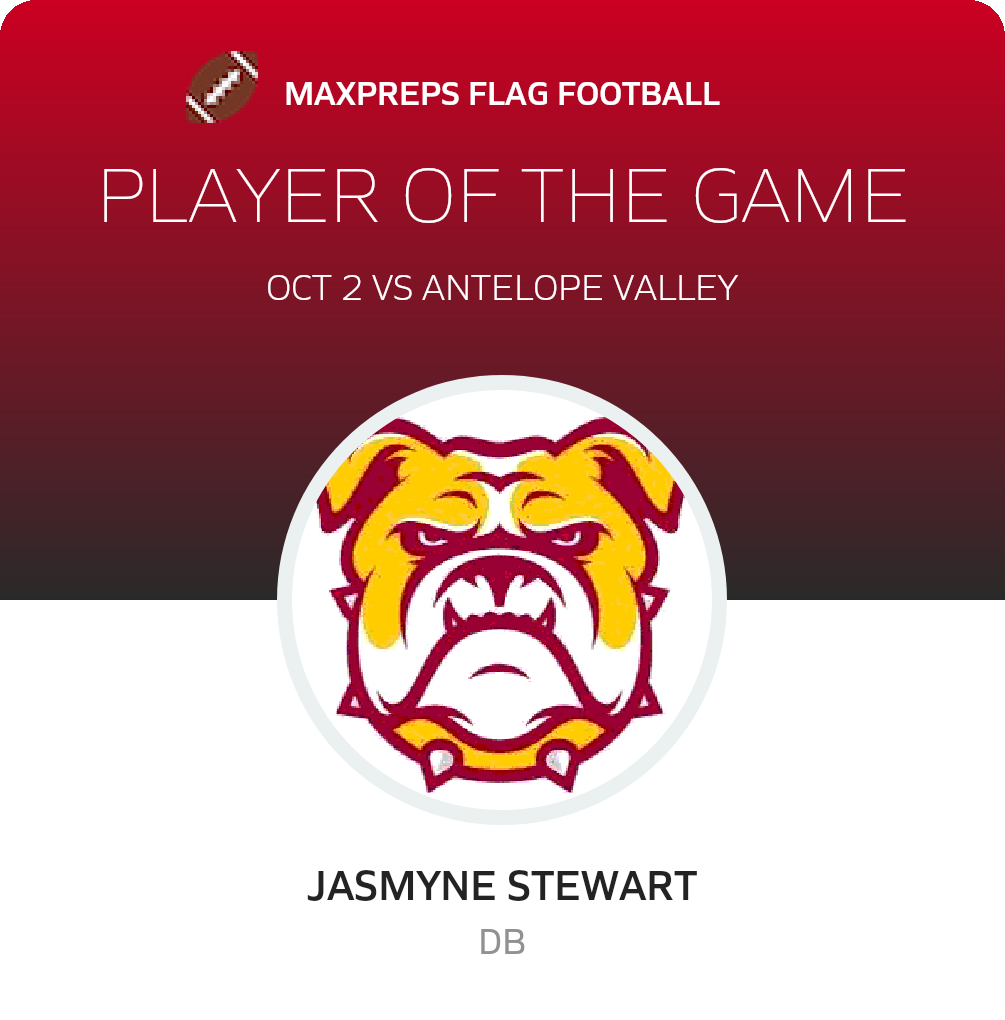 Congratulations to #16 Jasmyne Stewart for being selected the Highland Girls Flag Football Player of the Game.