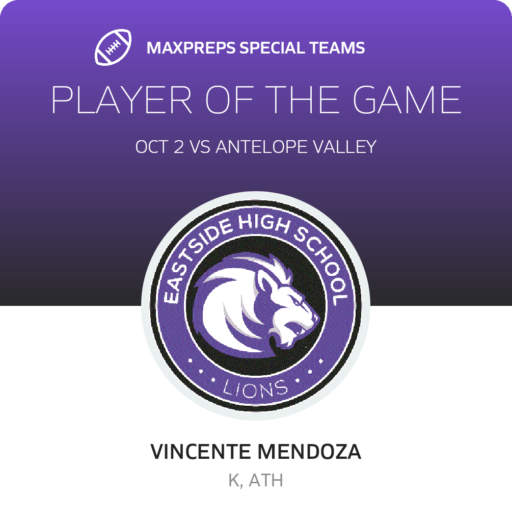 In their next game, the Lions battle the Highland Bulldogs (Palmdale, CA) in a Golden outing, on Friday, October 10.  Eastside will attempt to move on its 1-5 season record. The Bulldogs come into the outing with a 2-4 record after their 28-6 league win over Littlerock (Littlerock, CA).