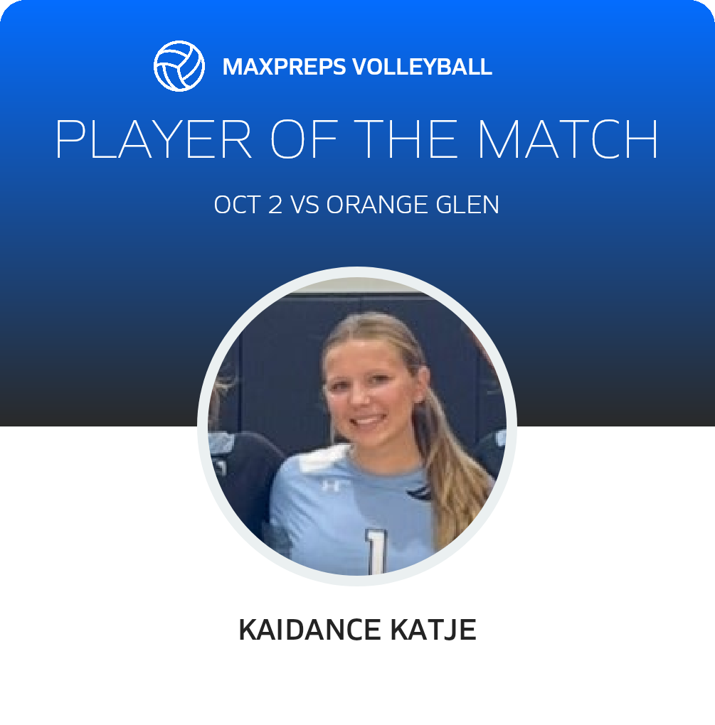 The Patriots now possess a 5-6 record. They play next when they travel to Maranatha Christian for a non-league match on Saturday, October 4. Orange Glen will confront a Eagles squad coming off a 3-0 league loss to Santa Fe Christian (Solana Beach, CA). The Eagles record now stands at 5-12.
