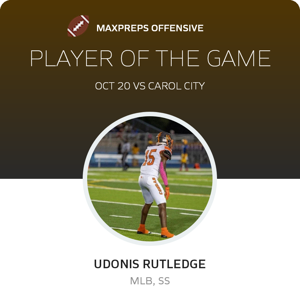 October 20, 2022: Miami, FL 33056 The South Miami Cobras football team (Miami, FL), was tipped 25-18 in Thursday's non-league challenge with the host Carol City Chiefs (Miami, FL)