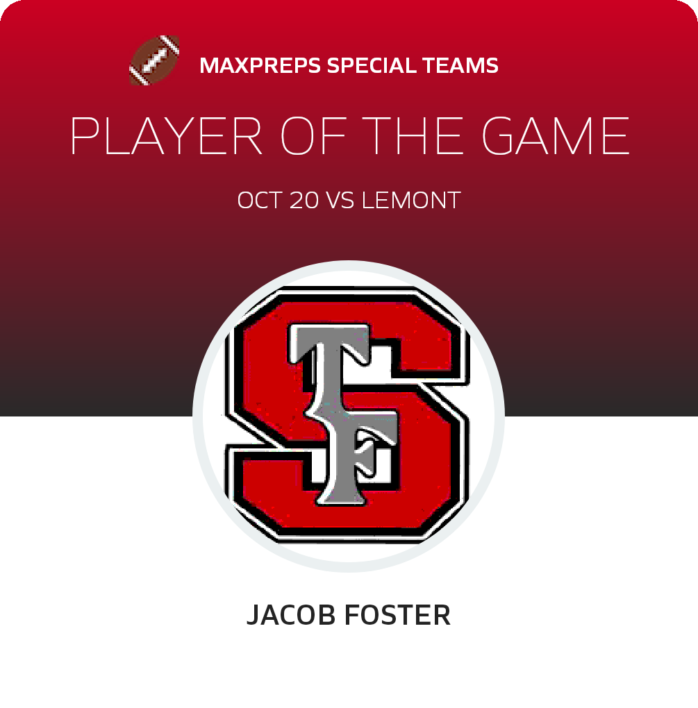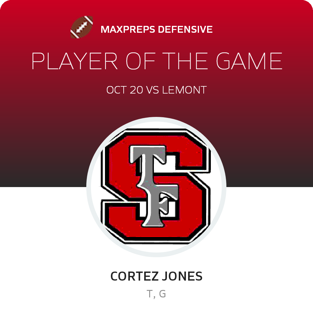 Congratulations to #72 Cortez Jones (overall and defensive), #16 Christian Streeter (offensive) and #45 Jacob Foster (special teams) for being selected the Thornton Fractional South Football Players of the Game.