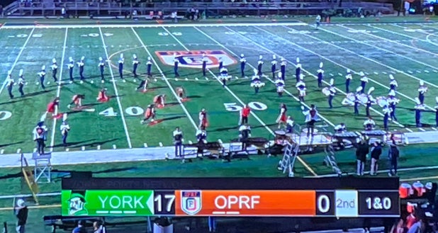 The Oak Park-River Forest (Oak Park, IL) varsity football team lost Thursday's home conference game against York (Elmhurst, IL) by a score of 34-8.