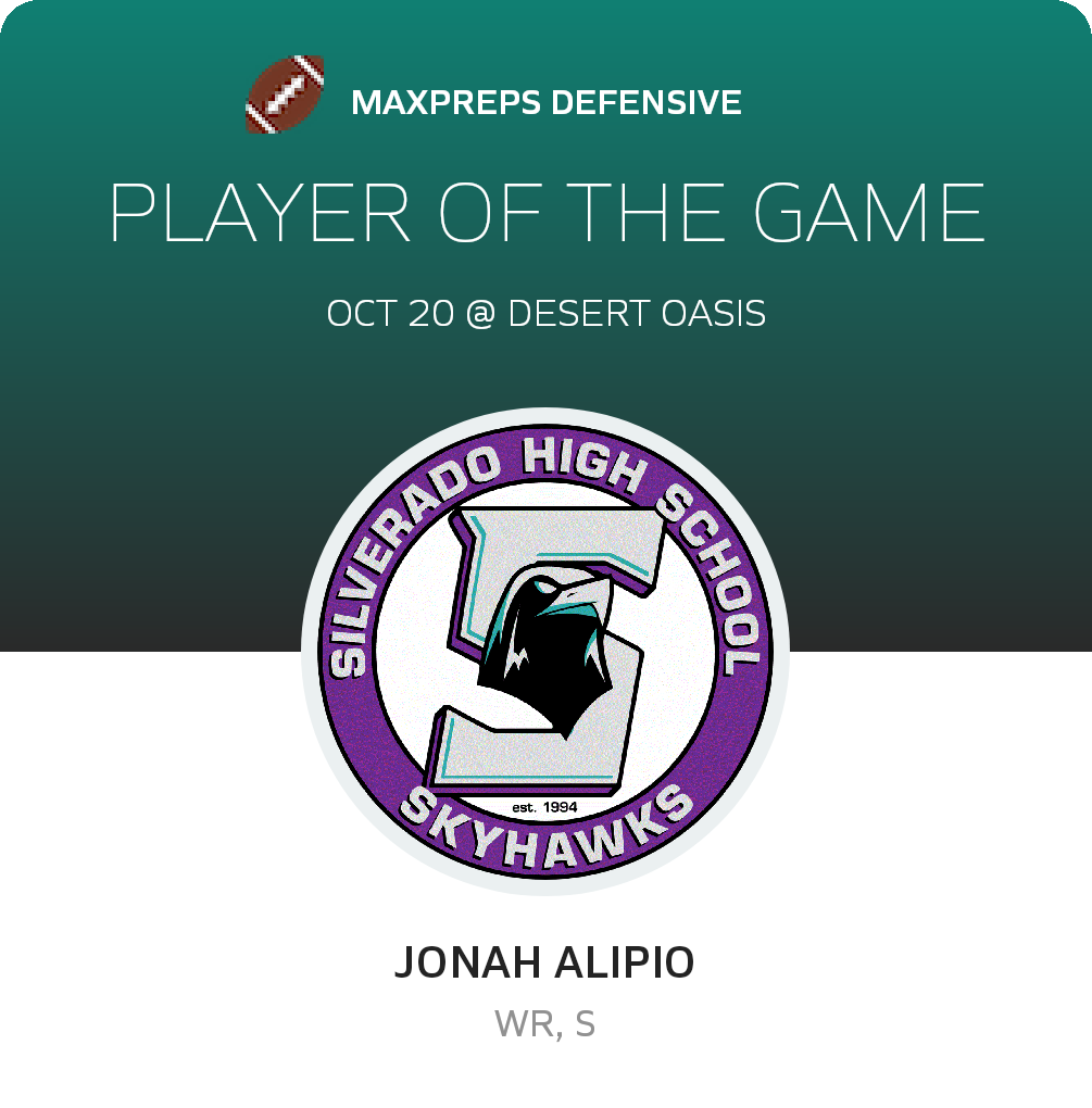 October 20, 2022: Las Vegas, NV 89141 The Desert Oasis Diamondbacks football team (Las Vegas, NV), was ripped 52-14 in Thursday's league challenge with the visiting Silverado Skyhawks (Las Vegas, NV)