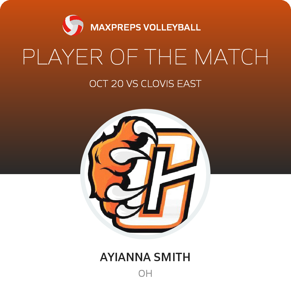 Congratulations to #8 Ayianna Smith for being selected the Central East Volleyball Player of the Match.