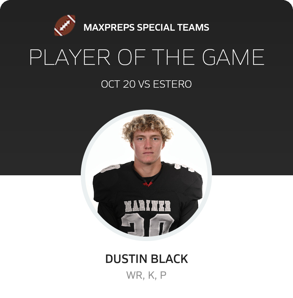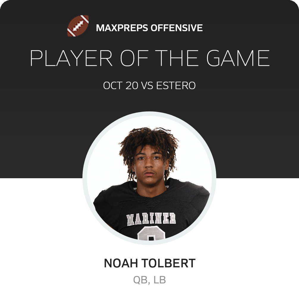 The Tritons now hold a 7-1 record. They take the field next when they host Cape Coral for a 3S District 14 game on Friday, October 27. Mariner will battle a Seahawks team coming off a 12-9 league loss to Island Coast (Cape Coral, FL). The Seahawks record now stands at 4-4.
