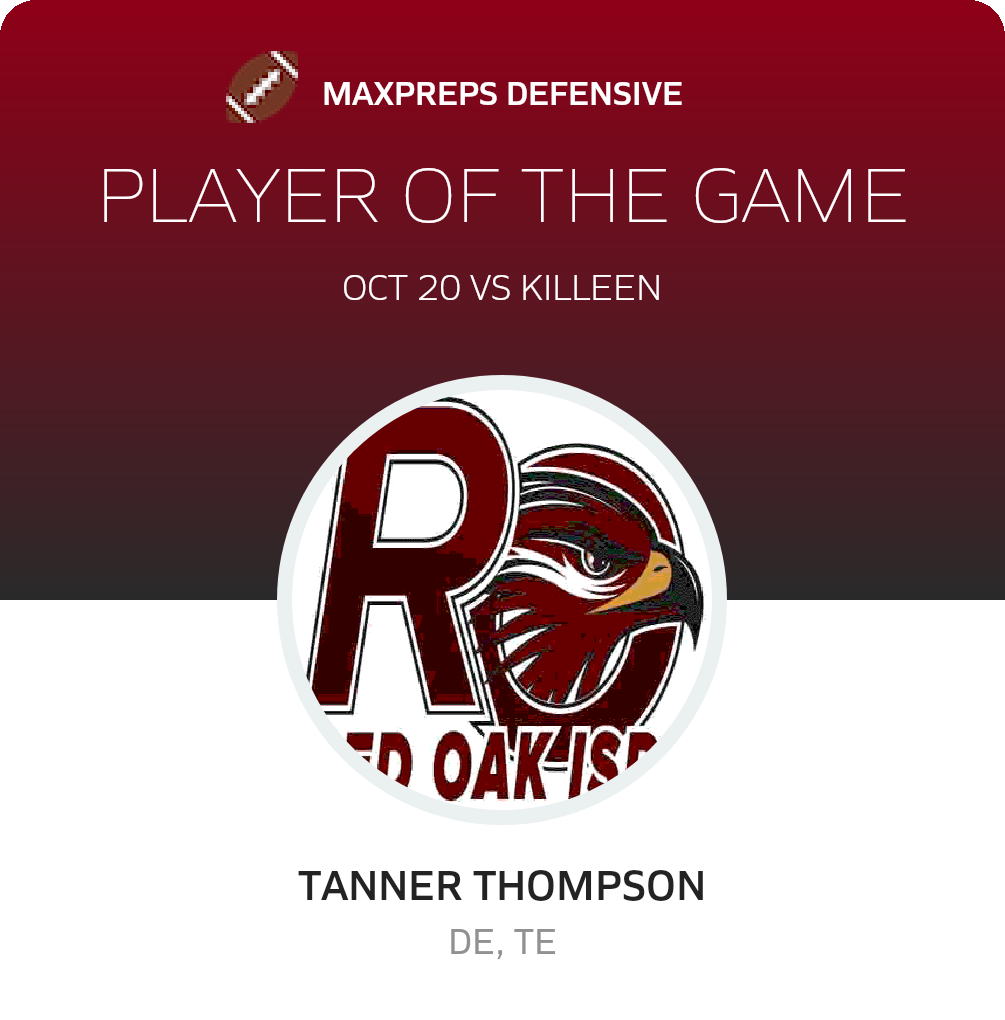 October 20, 2023: Red Oak, TX 75154 In Friday's league game, the Red Oak Hawks (Red Oak, TX) football team were victorious over the visiting Killeen Kangaroos (Killeen, TX), by a score of 56-37.