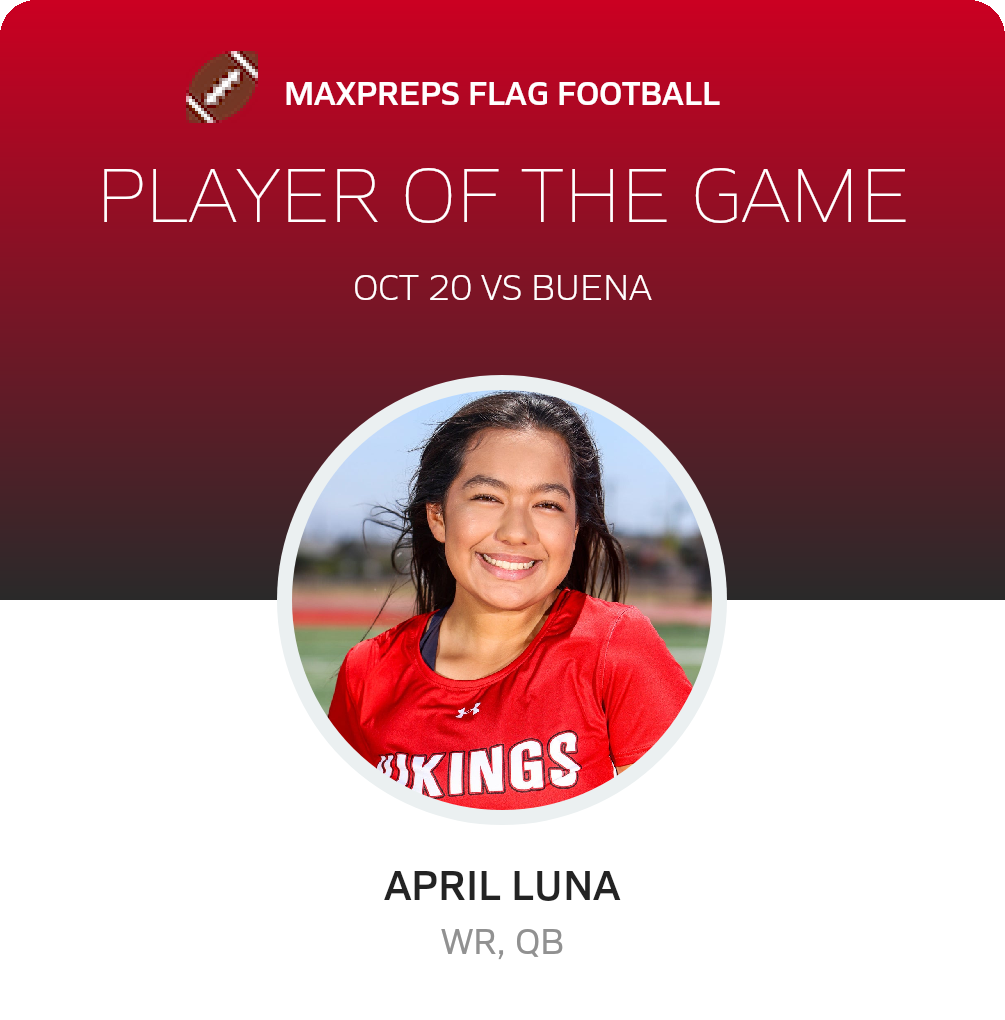 Congratulations to #22 April Luna for being selected the Hueneme Girls Flag Football Player of the Game.