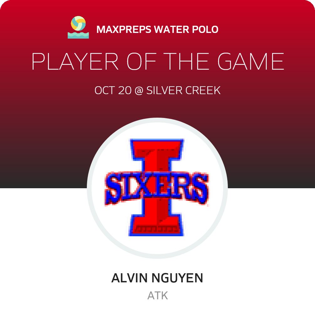 Congratulations to #9 Alvin Nguyen for being selected the Independence Water Polo Player of the Game.