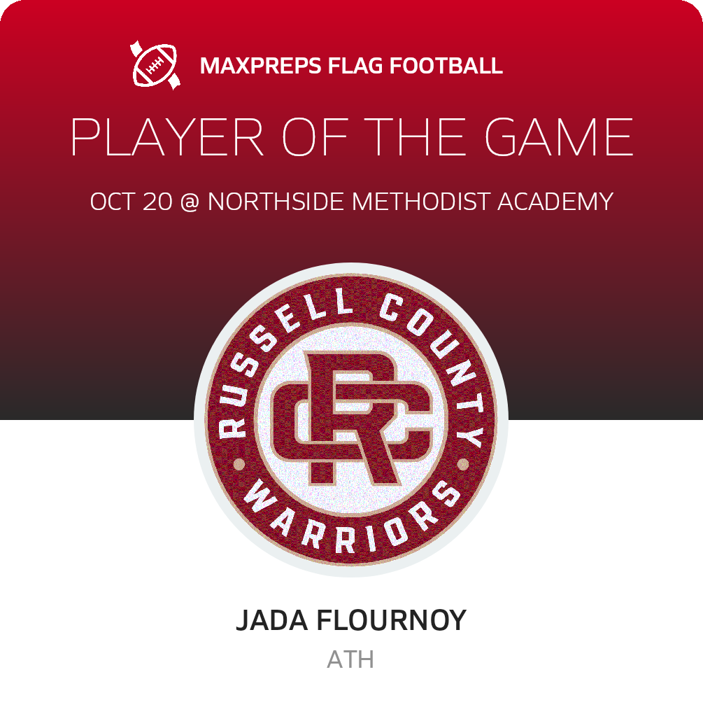 October 20, 2025: Dothan, AL 36303 The Russell County Warriors flag football squad scored 37 points and limited the host Northside Methodist Academy Knights to 0 in the Warriors non-league victory on Monday.
