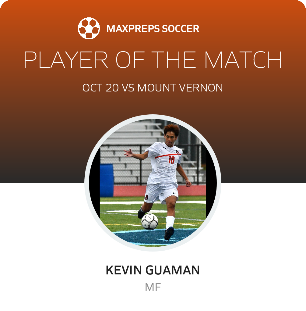Congratulations to #10 KEVIN GUAMAN for being selected the Spring Valley Soccer Player of the Match.