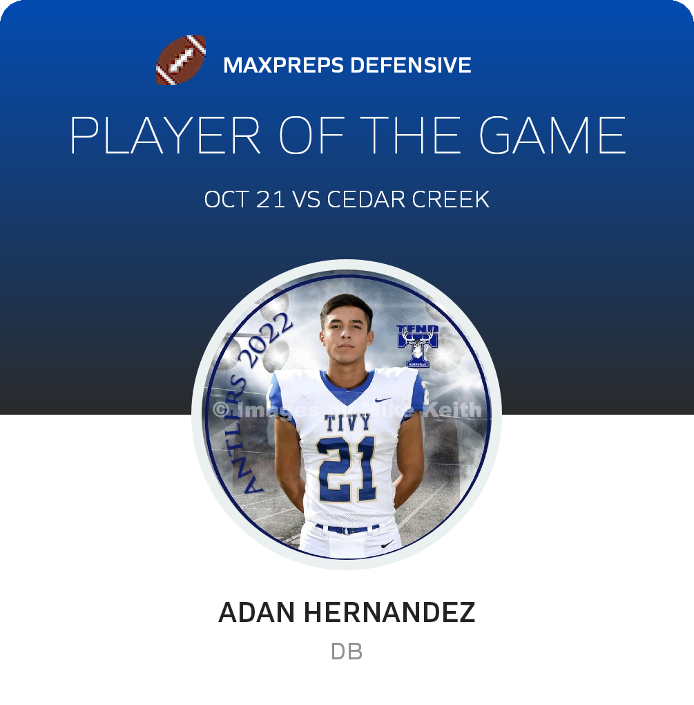 October 21, 2022: Kerrville, TX 78028 The Tivy Antlers (Kerrville, TX) football overcame the visiting Cedar Creek Eagles (Cedar Creek, TX), 35-10 in Friday's league bout.