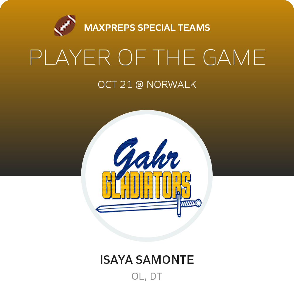October 21, 2022: Norwalk, CA 90650 In Friday's league game, the Gahr Gladiators (Cerritos, CA) football team knocked off the host Norwalk Lancers (Norwalk, CA), by a final score of 26-6.