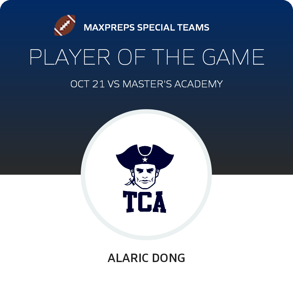 In their next game, the Patriots clash with the Merritt Island Christian Cougars (Merritt Island, FL) in a Sunshine State - Atlantic (8 Man) match, on Monday, October 24. Master's Academy will attempt to move on its 1-7 season record. The Cougars enter the match with a 5-2 record after their 49-14 non-league win over Florida School for the Deaf & Blind (St. Augustine, FL).