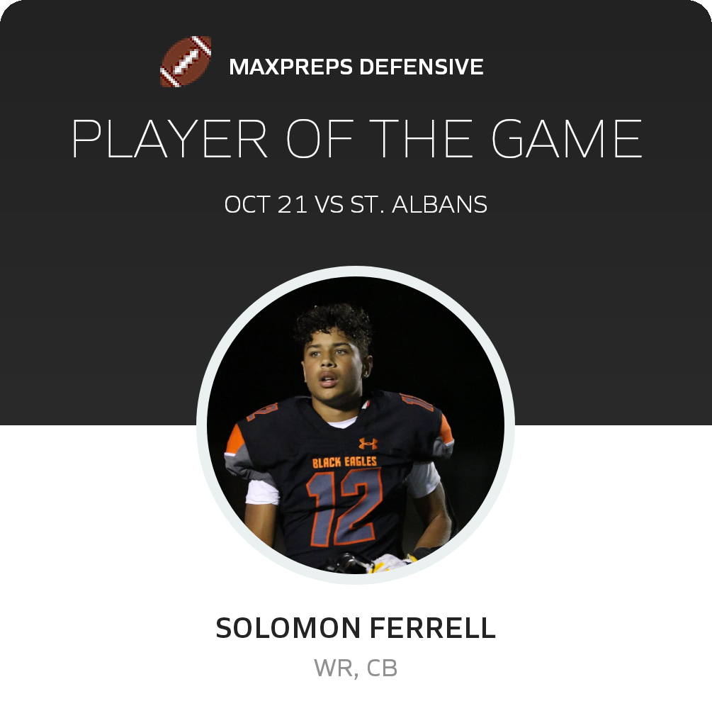 October 21, 2022: St. Albans, WV 25177 The South Charleston Black Eagles (South Charleston, WV) football edged the host St. Albans Red Dragons (St. Albans, WV), 19-17 in Friday's league bout.