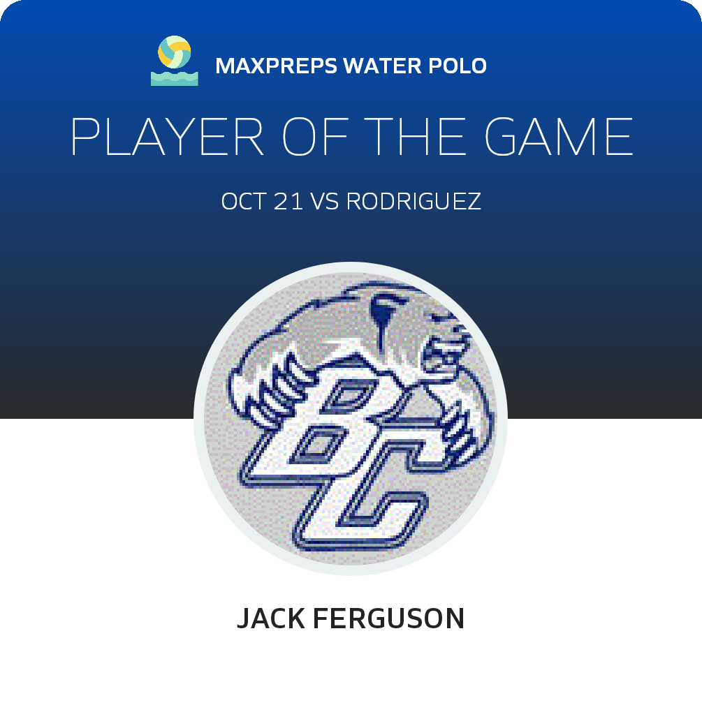 Congratulations to #12 Jack Ferguson for being selected the Bear Creek Water Polo Player of the Game.