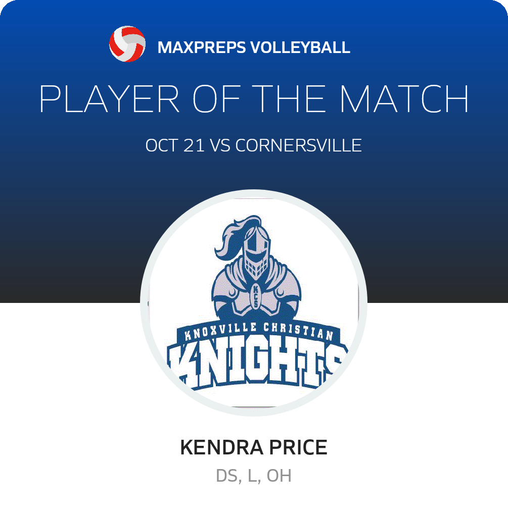 Congratulations to #2 Kendra Price for being selected the Knoxville Christian Volleyball Player of the Match.