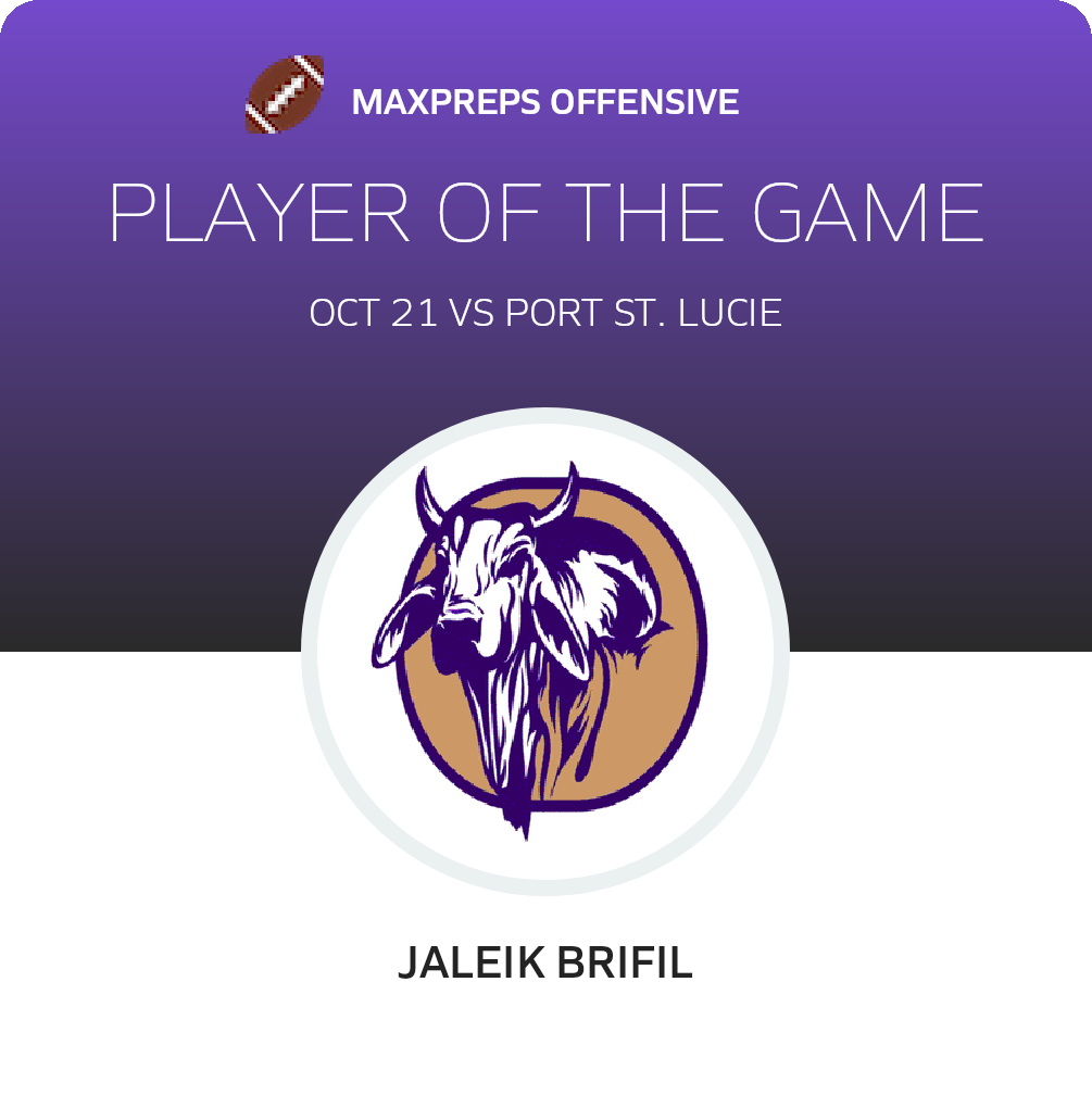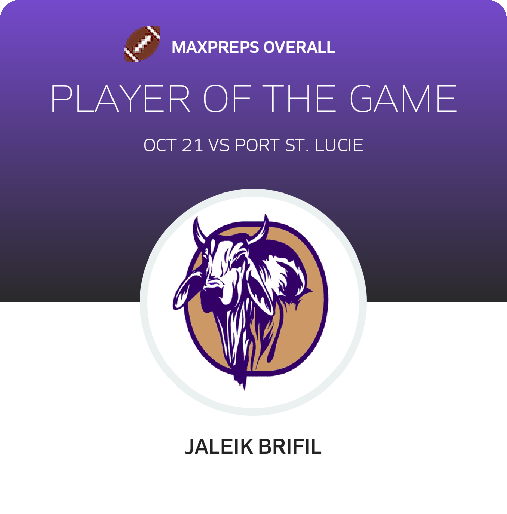 The Brahmans now own a 1-7 record. They play next when they host Jensen Beach for a 4A District 13 battle on Friday, October 25. Okeechobee will play a Falcons team coming off a 26-7 non-league win over Central (Fort Pierce, FL). The Falcons record now stands at 6-2.