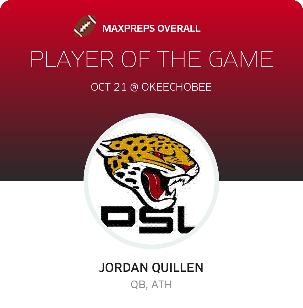 October 21, 2024: Okeechobee, FL 34972 Port St. Lucie Jaguars (Port St. Lucie, FL) followers went home pleased Monday as they saw their football team gain a win over the host Okeechobee Brahmans (Okeechobee, FL), 38-17 in a league battle.