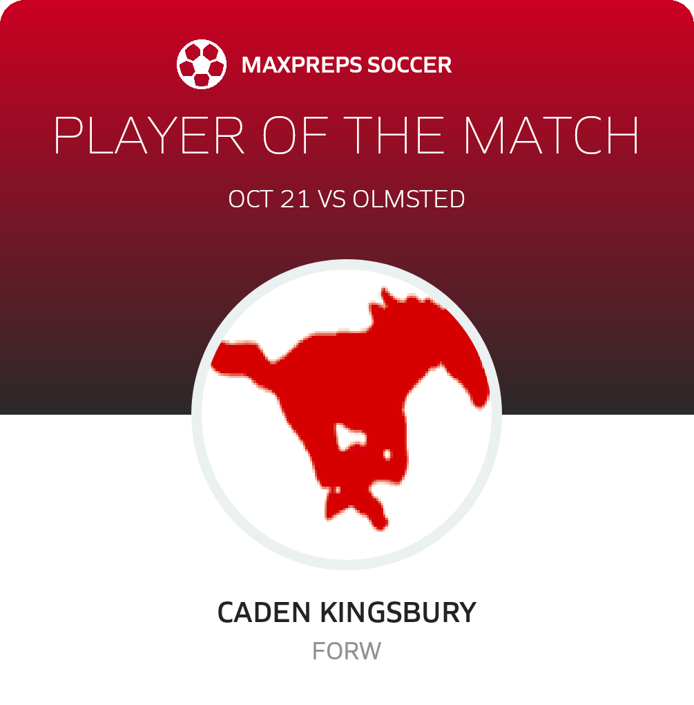 Congratulations to #16 Caden Kingsbury for being selected the Medina Soccer Player of the Match.