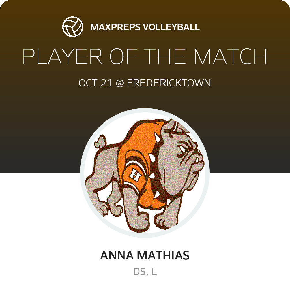 Congratulations to #3 Anna Mathias for being selected the Heath Volleyball Player of the Match.