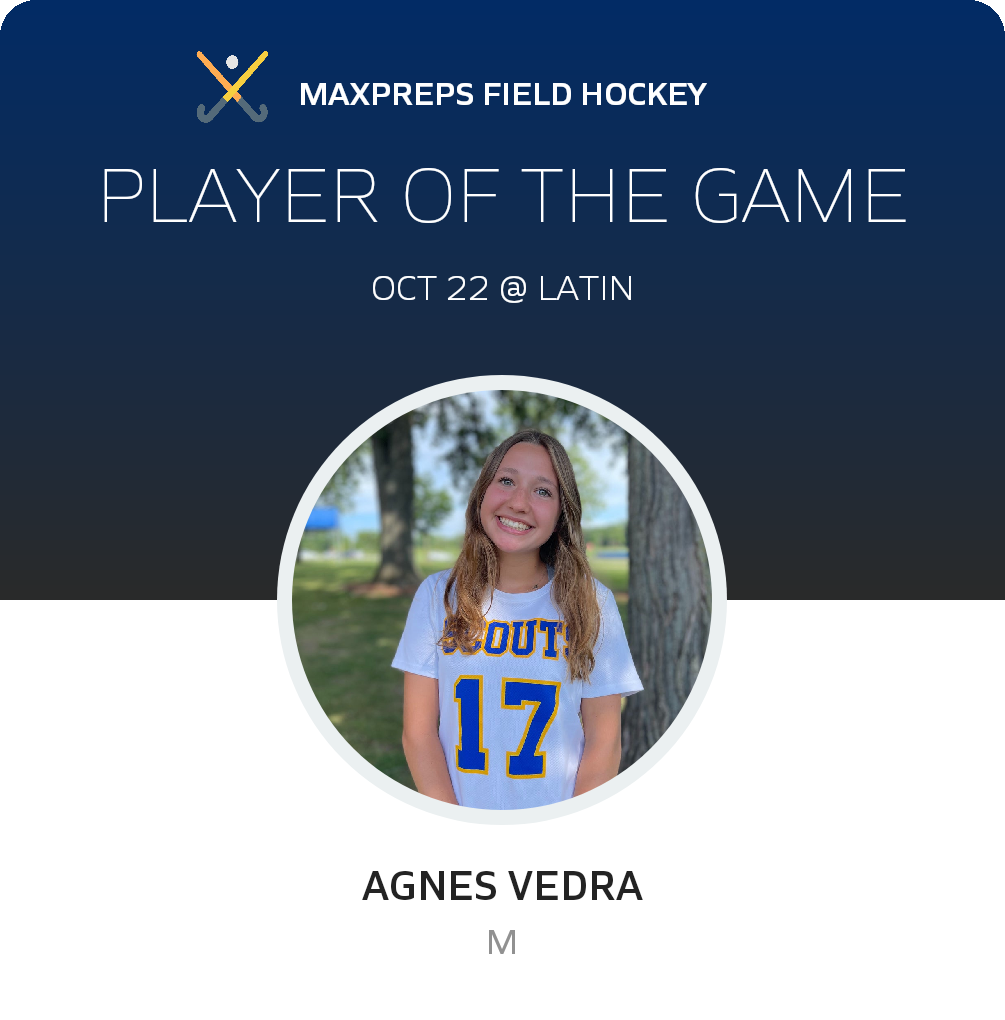 Congratulations to #1 Agnes Vedra for being selected the Lake Forest Field Hockey Player of the Game.