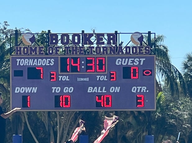 October 22, 2022: Sarasota, FL 34234 In Saturday's non-league game, the Booker Tornadoes (Sarasota, FL) football team were victorious over the visiting Wiregrass Ranch Bulls (Wesley Chapel, FL), by a score of 21-10.