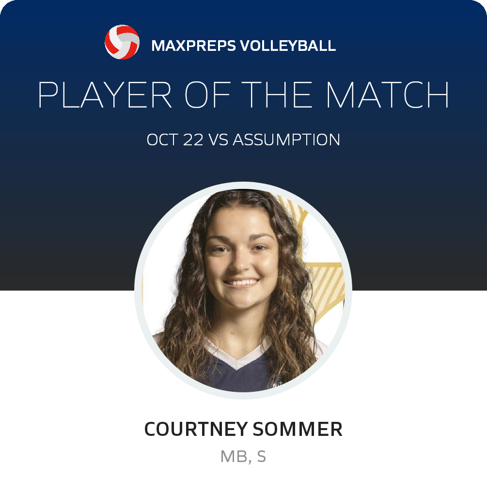 Congratulations to #2 Courtney Sommer for being selected the Columbus Catholic Volleyball Player of the Match.