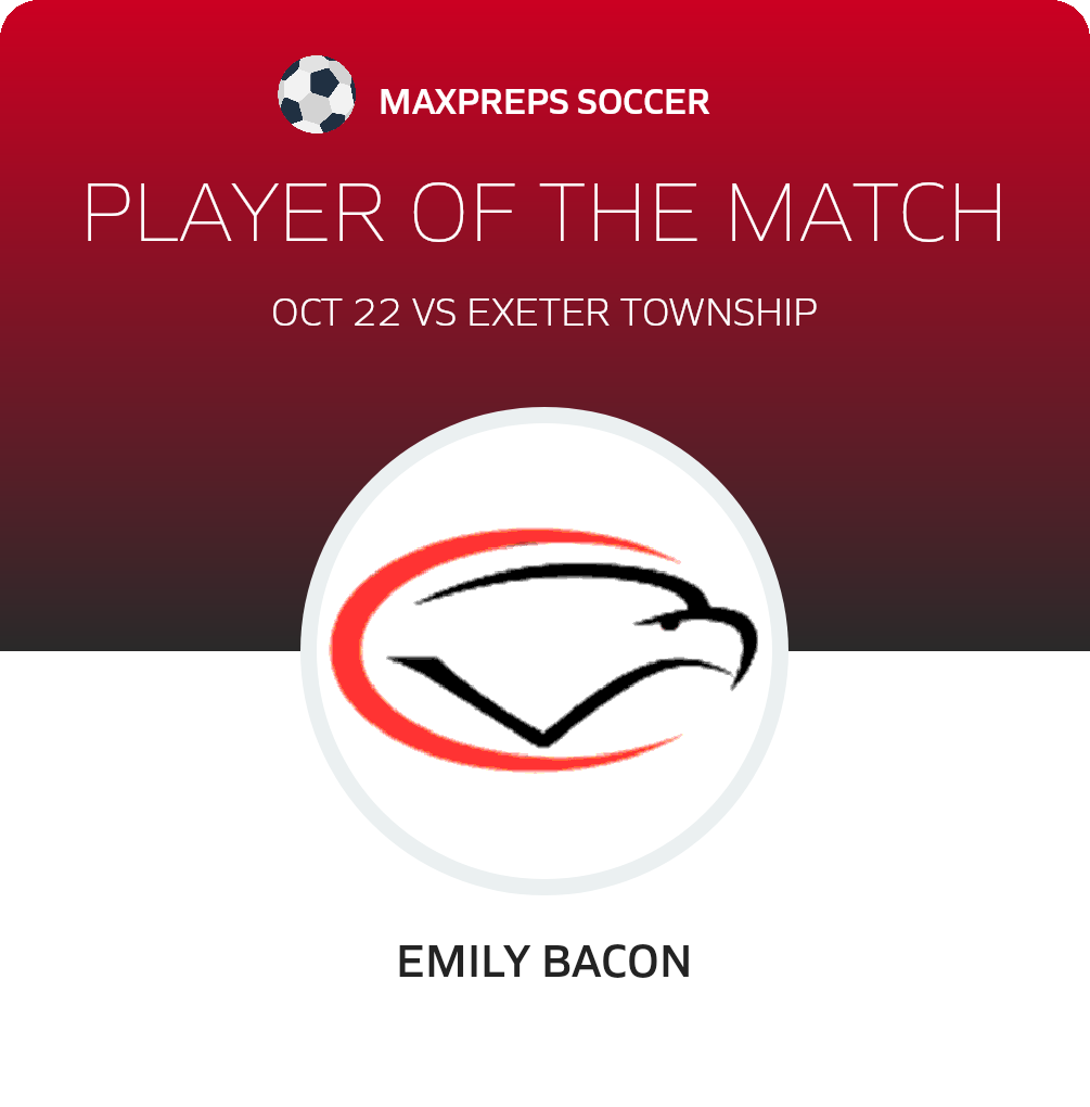 October 22, 2024: Mechanicsburg, PA 17050 The Cumberland Valley Eagles (Mechanicsburg, PA) soccer nipped the visiting Exeter Township Eagles (Reading, PA), 1-0 in Tuesday's non-league challenge.