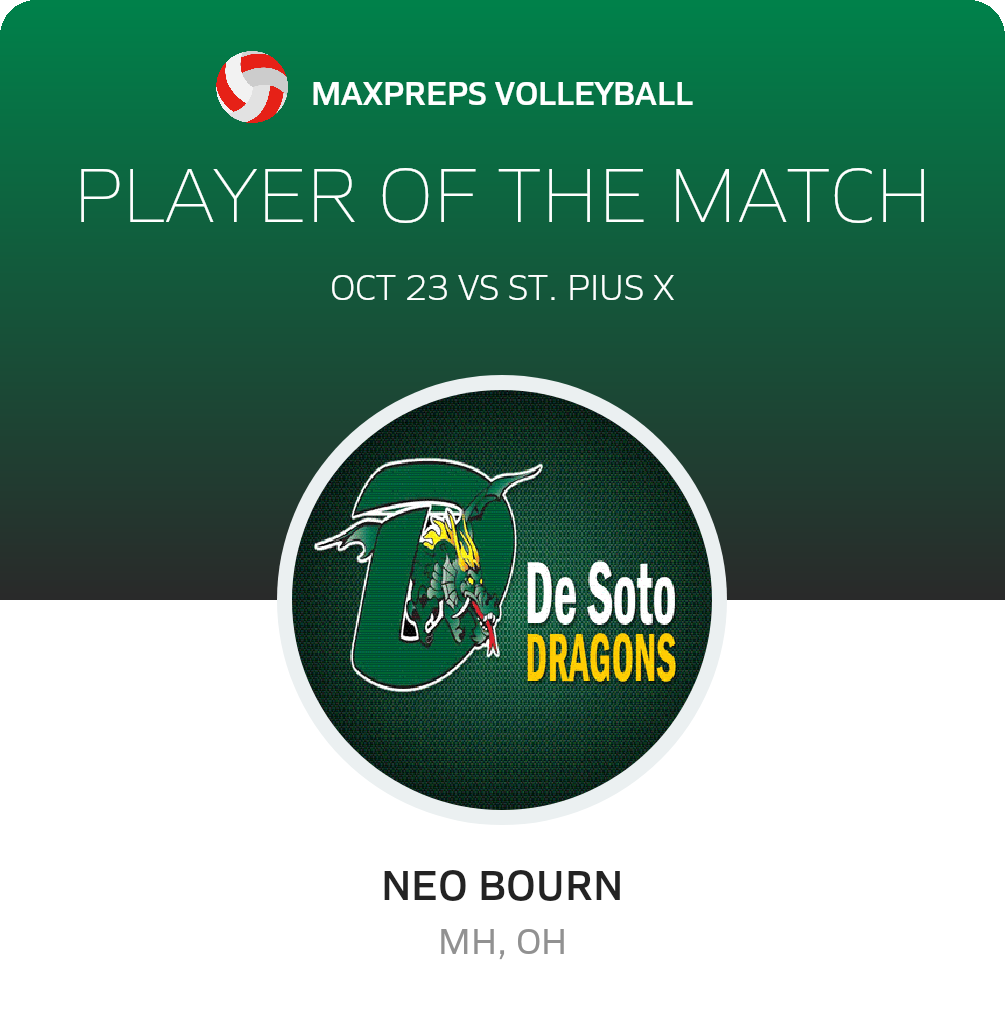 October 23, 2023: DeSoto, MO 63020 The St. Pius X Lancers volleyball team scored 3 points and limited the host DeSoto Dragons to 0 in the Lancers non-league victory on Monday.