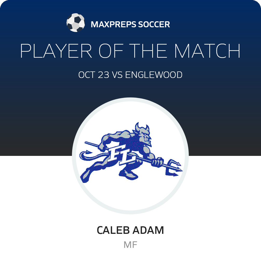 Congratulations to #7 Caleb Adam for being selected the Fort Lupton Soccer Player of the Match.
