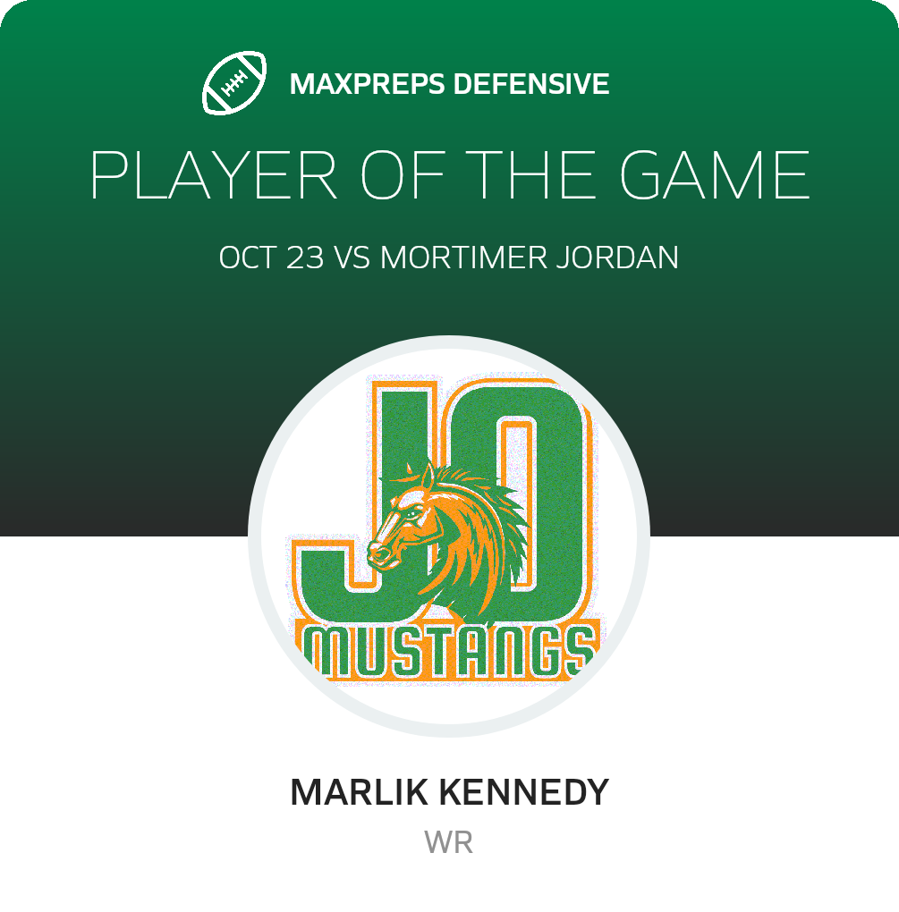 October 23, 2025: Birmingham, AL 35218 In Thursday's league game, the Mortimer Jordan Blue Devils (Kimberly, AL) football team were victorious over the host Jackson-Olin Mustangs (Birmingham, AL), by a margin of 28-14.