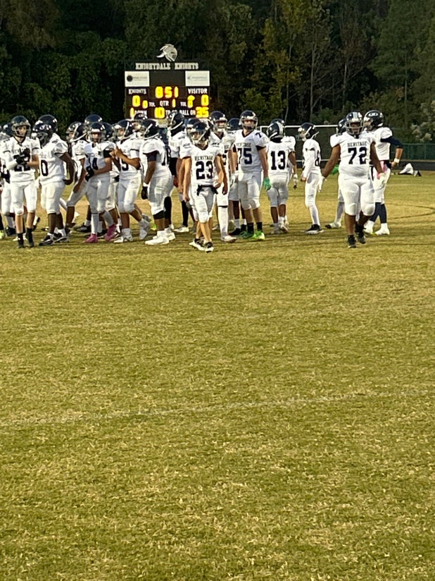 October 23, 2025: Knightdale, NC 27545 Heritage Huskies (Wake Forest, NC) followers went home pleased Thursday as they saw their football team gain a win over the host Knightdale Knights (Knightdale, NC), 20-10 in a league battle.