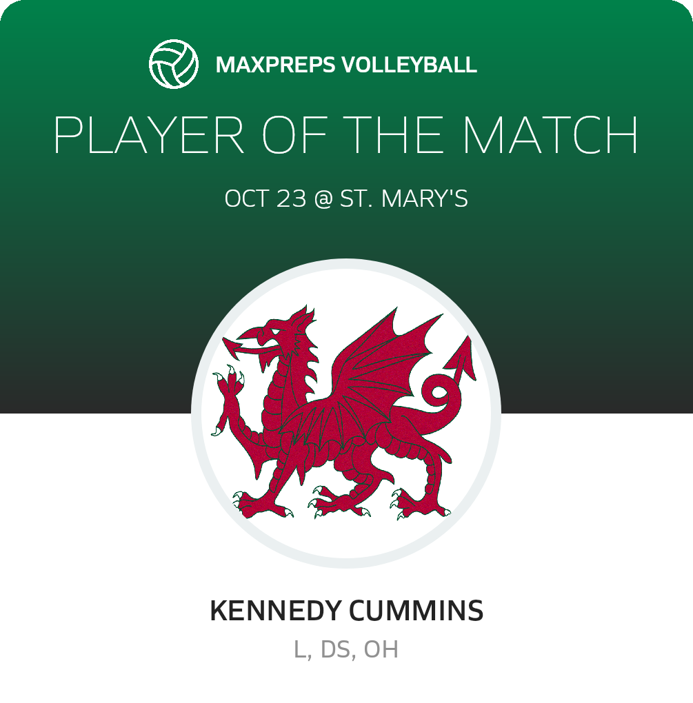 Congratulations to #4 Kennedy Cummins for being selected the Glenelg Country Volleyball Player of the Match.