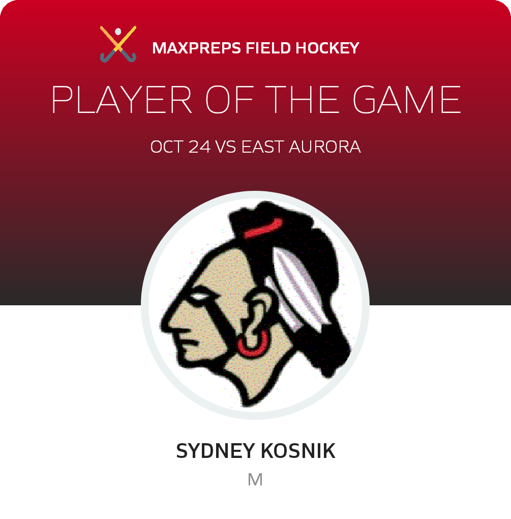 Congratulations to #21 Sydney Kosnik for being selected the Iroquois Field Hockey Player of the Game.