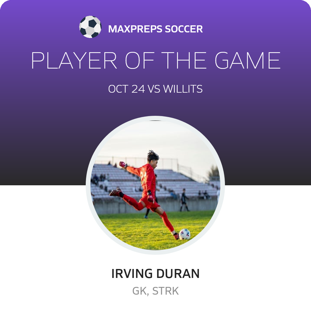 Congratulations to #24 Irving Duran for being selected the Fort Bragg Soccer Player of the Match.