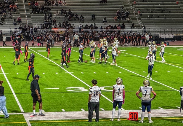 Timeout on the field. 1:47 left in the game. 2nd and 21, Cowboys with the ball on the SVHS 38. Cowboys up 14-7.