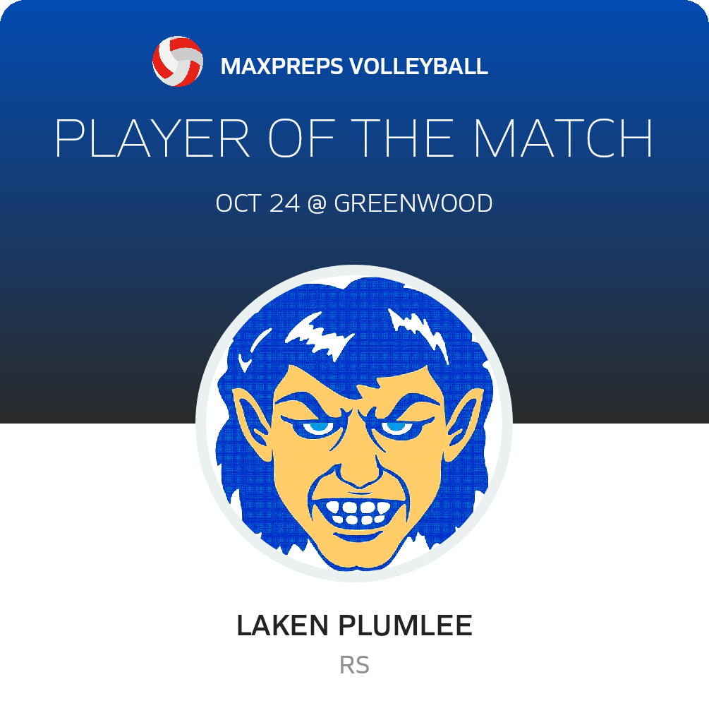 Congratulations to #7 Laken Plumlee for being selected the Harrison Volleyball Player of the Match.