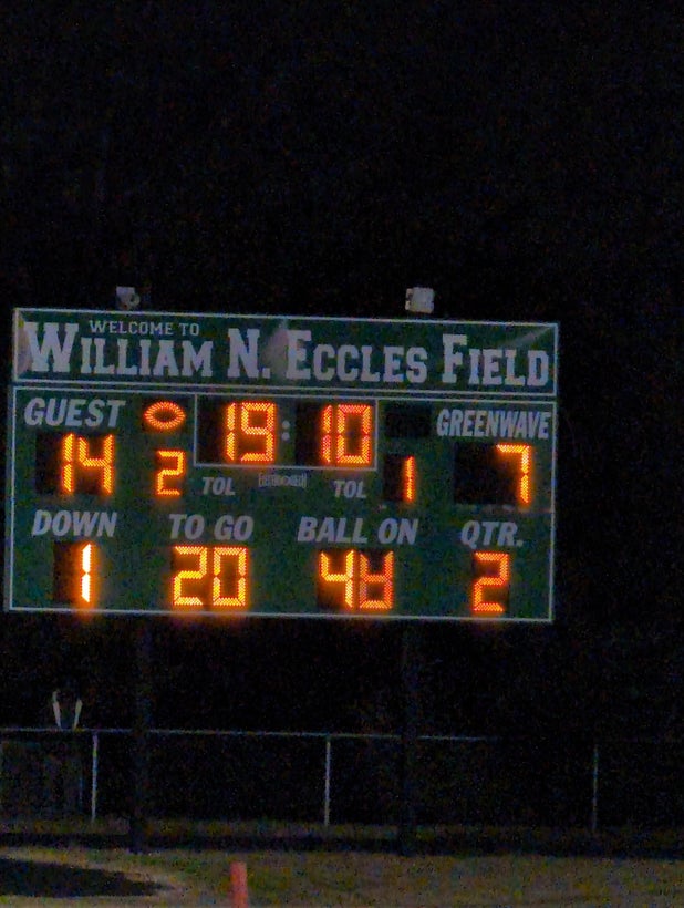 October 24, 2025: Gastonia, NC 28054 The Ashbrook Greenwave got by the visiting Crest Chargers football team by a score of 21-14 in Friday's league challenge.